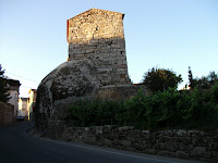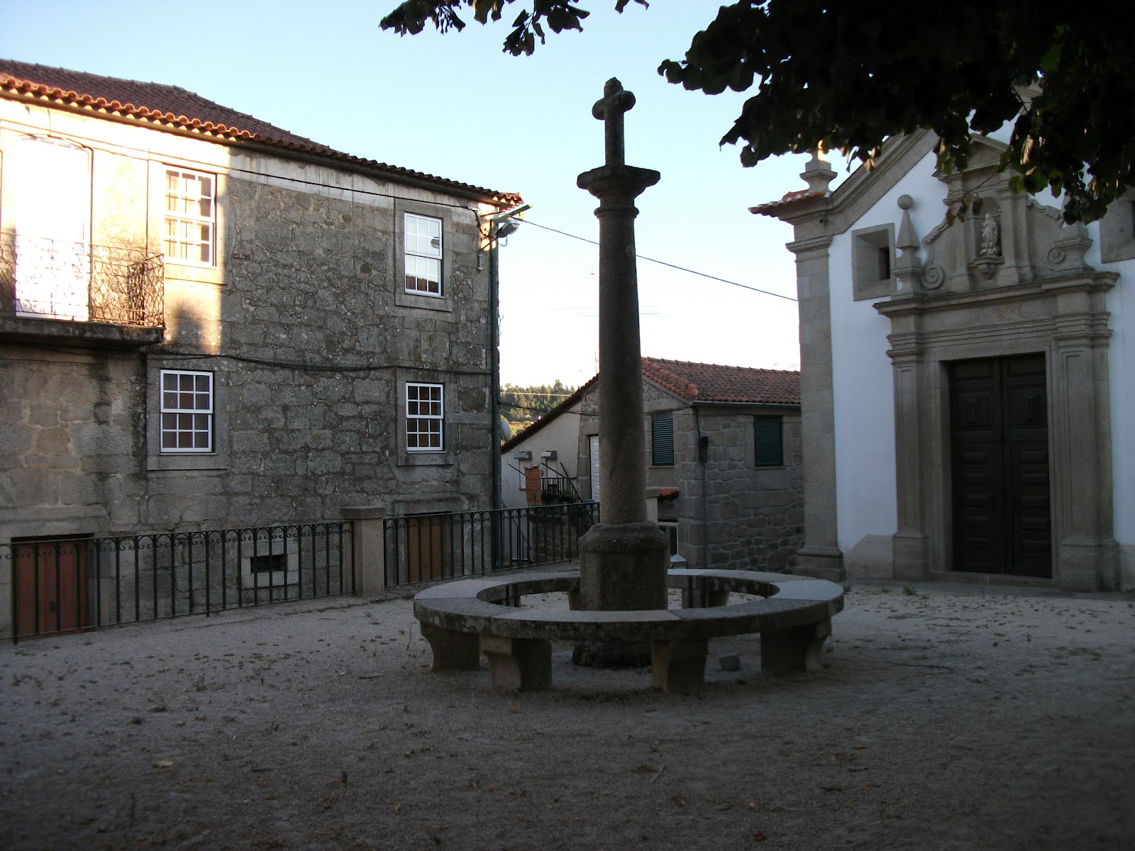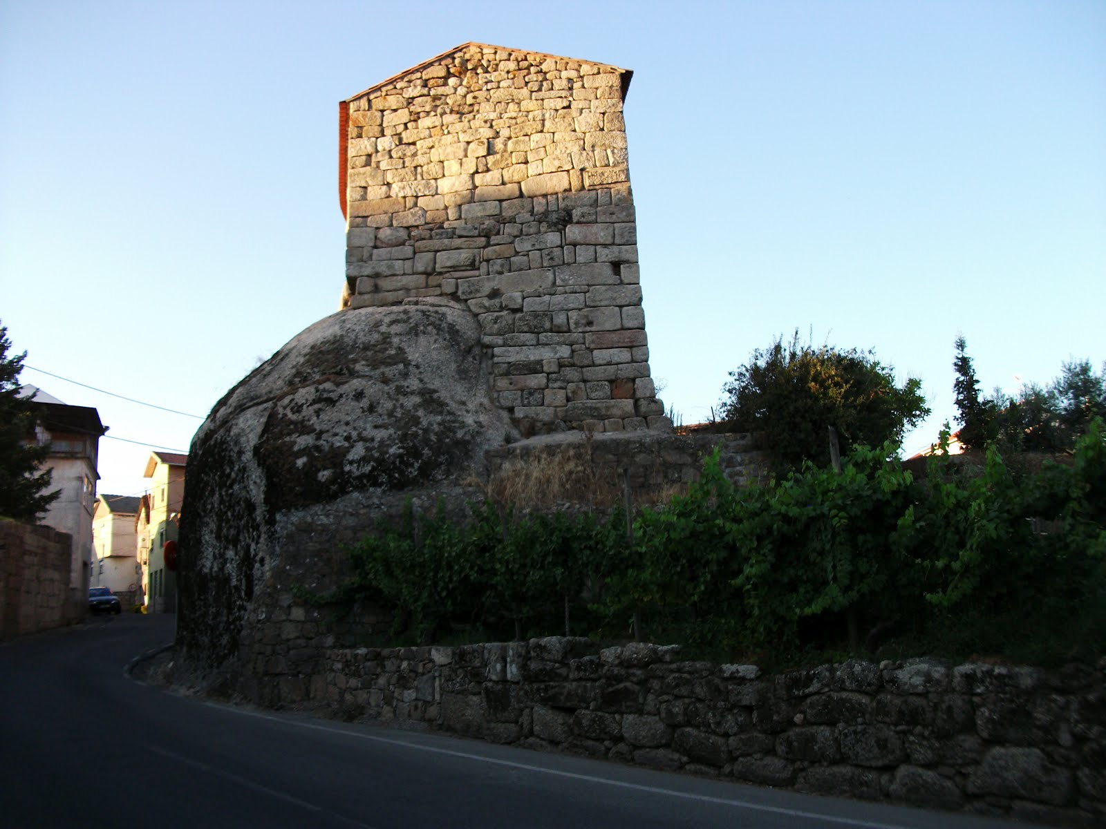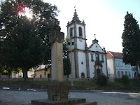 O simbolo mais notavel da presenca romana e´, efectivamente, o arco que se levanta em frente da igreja, perpendicular `a frontaria desta. compoe-se `a volta do arco de longas aduelas, marcadas com o sinal do forfex. Serve-lhe de pés direitos um muro de silharia rusticada nas faces laterais e dotado de cimalha. Internamente, enconstam-se-lhe um dos pes direitos, cinco portes silhares, de duas colunas ligadas. Ha um silhar junto`a capela de Nossa Senhora da Luz, que lhe tera tambem pertencido.