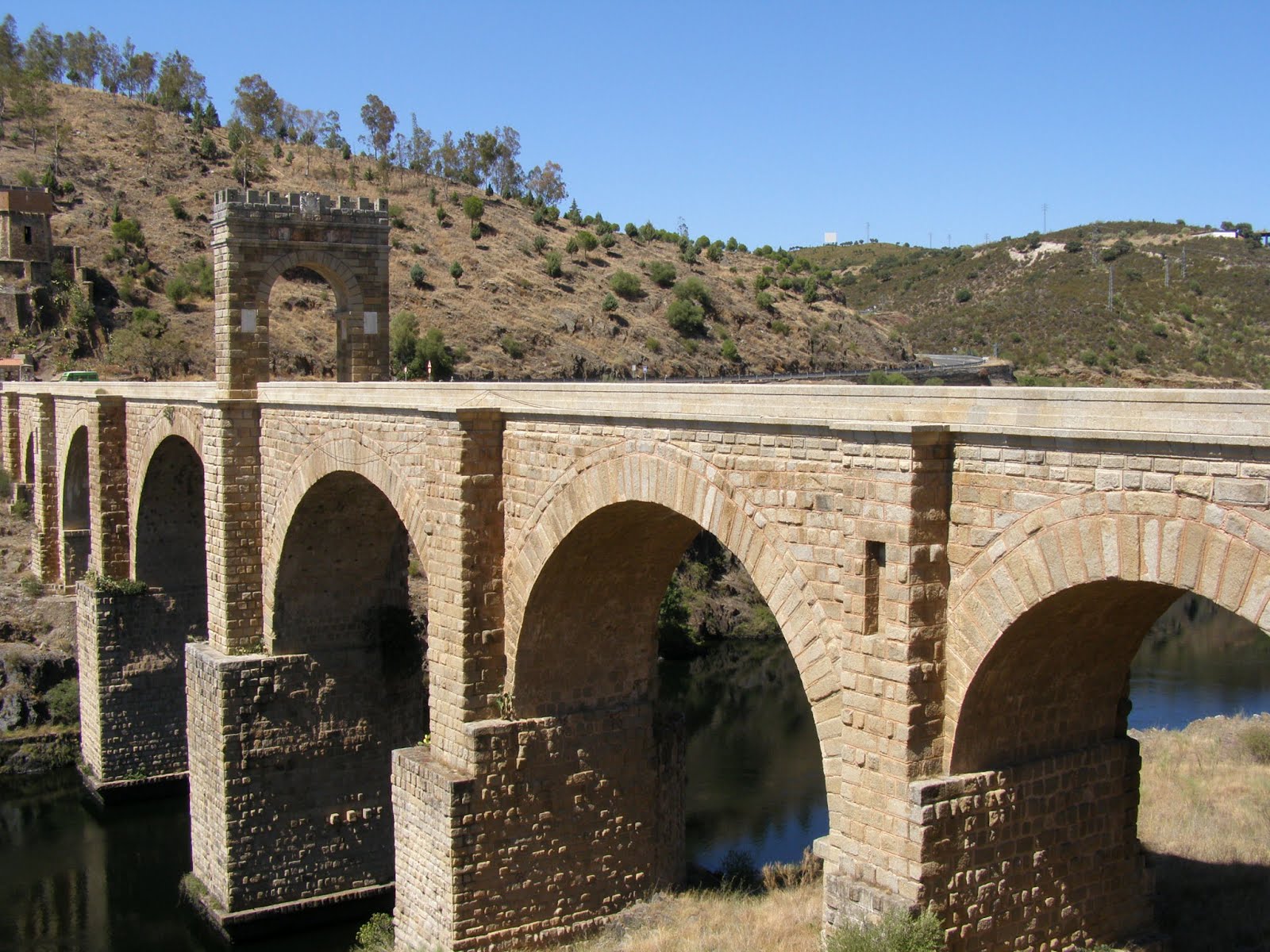 É indescritível a impressão que produz a ponte, monumento sem par no mundo entre os do seu género e época, cuja grandiosidade apenas somos capazes de compreender. O assombro que causa contemplar a ponte desde cima, sendo imenso, não é comparável ao que produz vista debaixo, desde a orilha do rio.Pilares e arcos alçam-se no espaço com arrogância e firmeza inverosímeis, criando naquele que os contempla o duplo complexo da pequenez e da grandeza humana, porque se sente insignificante junto a aquela mole de pedra e orgulhoso ao pensar que é obra do homem. Esta imensa mole de pedra granítica, foi concluída entre os anos 105 e 106 da nossa Era. Fez-se a expensas de onze municípios da Lusitânia, sob a direcção de Cayo Julio Lacer, reinando Trajano, na via de Norba (Cáceres) a Conimbriga (Condeixa-a-Velha).Salva com só seis arcos os 194 metros de comprimento do profundo barranco que o rio Tejo abre entre os penhascos de um lugar donde não houve cidade romana e cavalga entre dois recodos do caudal do rio que atenuam o ímpeto da corrente, mas donde a acumulação de agua impede multiplicar os pilares.A cota de la via e as grandes crescidas obrigaram a descomunal altura de 48 metros para os dois arcos centrais que com a sua grande largura de 27,34 e 28,60 metros ocupam o caudal das águas e deixam fácil passo à corrente; de 24 metros os seguintes e tão só de 18,47 os laterais, formam seguro contraforte da pressão do central. A Altura total é de 71 metros. Na ponte há um tabuleiro de mármore com inscrição do ano de 105 a 106 de J. C. dedicada a Trajano, e mais outras duas onde aparecem os nomes dos municípios da Lusitânia que contribuíram para a obra, Igaeditani, Lancienses, Oppidani, Talori, Interannienses, etc., o que demonstra que a ponte não foi obra do estado, mas sim comunal. No lado esquerdo da ponte há uma inscrição que diz que foi o arquitecto Cayo Julio Lacer que edificou esta ponte e que diz "que esta ponte durará tanto quanto o mundo durar". Ponte Romana de Alcântara concluída entre 105 a 106 DC e dedicada a Trajano Acima da ponte, no leito do rio, encontra-se uma barragem hidroeléctrica , a mais importante, no seu tempo, da Europa Ocidental (3 162 milhões de m3). A superfície inundada é de 10 400 há e a longitude do açude é de 91 km. Desde o século XIII até hoje, um dos arcos foi várias vezes cortado nas guerras e reconstruído depois. Em 1475, nas lutas de Castela e Portugal, quando pensavam derruba-lo para evitar que Alfonso V o cruzasse, se salvou pela galhardia do português que mandou dizer a seu inimigo o duque de Villahermosa que ele daria um rodeio, pois "não queria o reino de Castela com menos aquele edifício".Mais tarde foi recomposto por Carlos V em 1543 desfigurando o perfil do arco central, depois por Carlos III e novamente, em 1860, por dona Isabel II. Nesta última restauração, séc. XIX, taparam-se as juntas das pedras. A sua situação junto ao rio Tejo, e sua proximidade à fronteira portuguesa, serão dois factores determinantes de seu passado histórico e artístico. Conservam-se magníficas obras artísticas que abrangem desde os tempos pré-históricos até a Idade Moderna, por isso Alcântara pode considerar-se como uma população excepcional, por conter um rico património artístico. Foi o berço de São Pedro de Alcântara, místico reformador da Ordem Franciscana.A existência de grupos populacionais nas suas imediações durante a pré-história nos o certifica o achado de sepulcros megalíticos e um povoado fortificado da Idade do Ferro. Durante a dominação romana se levará a cabo uma importante empresa construtiva, como é a realização de uma ponte sobre o rio Tejo.Esta ponte comunicava vários municípios do norte do Tejo com a região do sul. No entanto não parece que seja até a dominação árabe quando se estabeleça na actual Alcântara um grupo populacional permanente, então denominada "Cántara-as-Saif" (ponte da espada), que teria como missão principal o controlar o passo pela ponte.Durante a Reconquista, Alcântara foi um ponto muito cobiçado, devido a sua situação estratégica e pela presença da ponte, com o qual se controlava a passagem de exércitos e ganhos.Após uma etapa de instabilidade, na qual passou sucessivamente a mãos cristãs e muçulmanas, será definitivamente conquistada por Alfonso IX de Leão em 1213 e, após pertencer à Ordem Militar de Calatrava, será cedida em 1218 à Ordem Militar de São Julião de Pereiro, que transladarão a Alcântara sua Casa matriz e mudarão sua denominação pela de Ordem Militar de Alcântara. Devido a seu lugar fronteiriço com Portugal, Alcântara foi palco de numerosos eventos bélicos durante os séculos XVlI e XVIII, chegando as tropas portuguesas a ocupar a praça em diversas ocasiões.Esta breve revisão do passado histórico da população, permite-nos compreender a existência de uma série de construções significativas, pelas quais podemos comprovar o papel histórico que desempenhou Alcântara.Provavelmente a ponte romana, os restos da muralha árabe, a presença da Conventual de São Benito, casa matriz da Ordem de Alcântara, a existência de numerosos palácios senhoriais e as reformas efectuadas nos tempos modernos da primitiva muralha, sejam os principais elos do seu passado histórico.