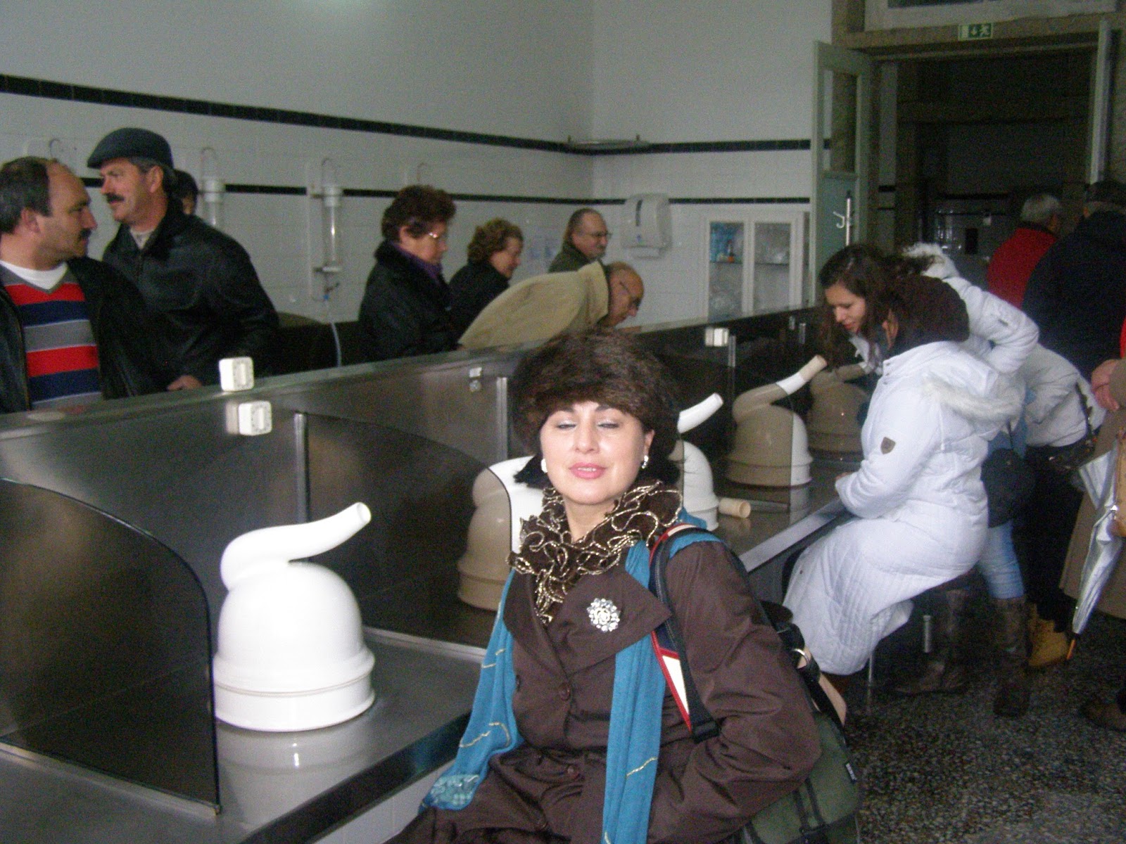 Foram-nos dadas explicações no decorrer da visita dividida em dois grupos para que pudéssemos ver e interagir com os diversos processos praticados nas termas nos diversos tratamentos a que os utentes são sujeitos consoante o seu problema. Estas aguas são hipertermais, pouco mineralizadas, bastante sulfúreas, sódicas e fluoretadas.